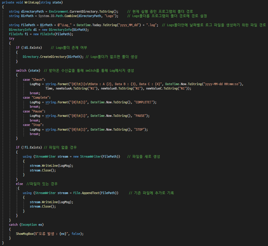 데이터를 받아오는대로 Log를 작성하기 위한 메서드이다.